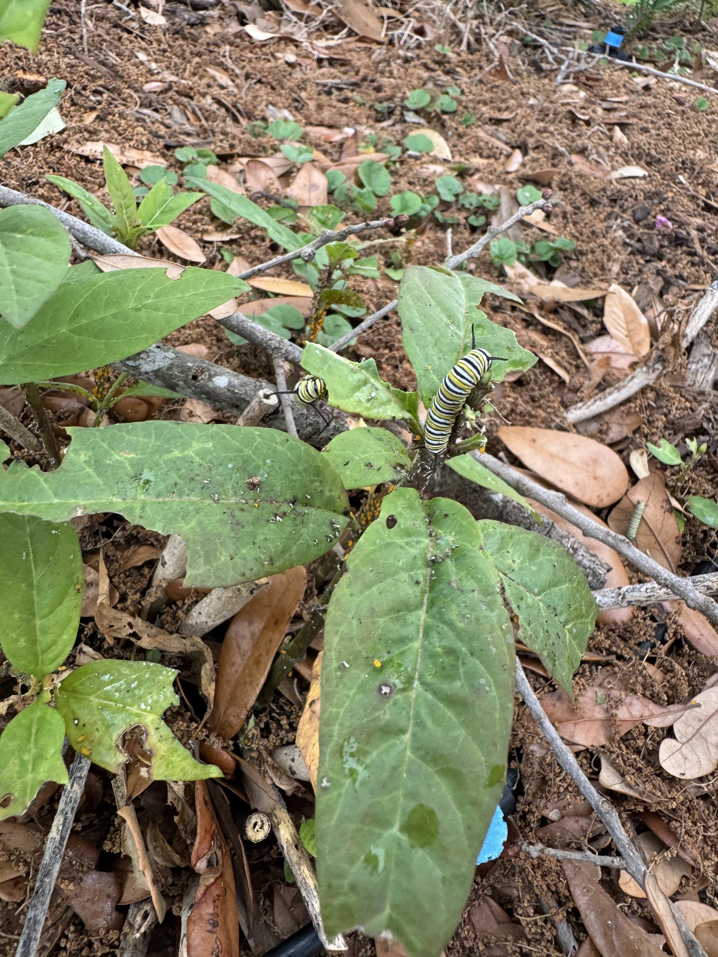 Monarch butterfly caterpillars is the whole reason I grow milkweed, so my assessment is to leave them. The aphids, on the other hand, have to go.